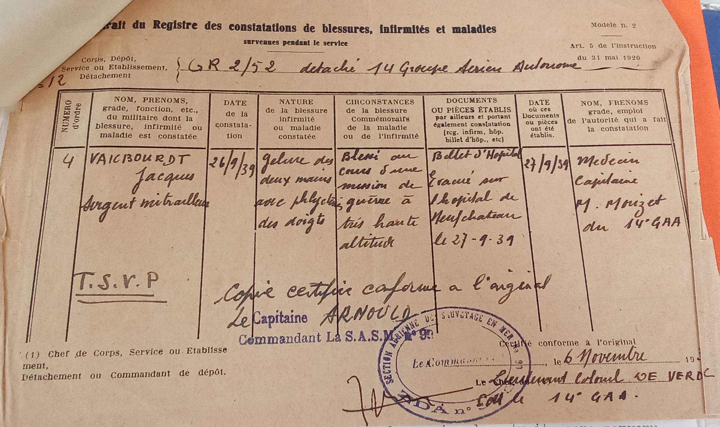 il est transféré au GR II/52 le 13 Mai 1940.