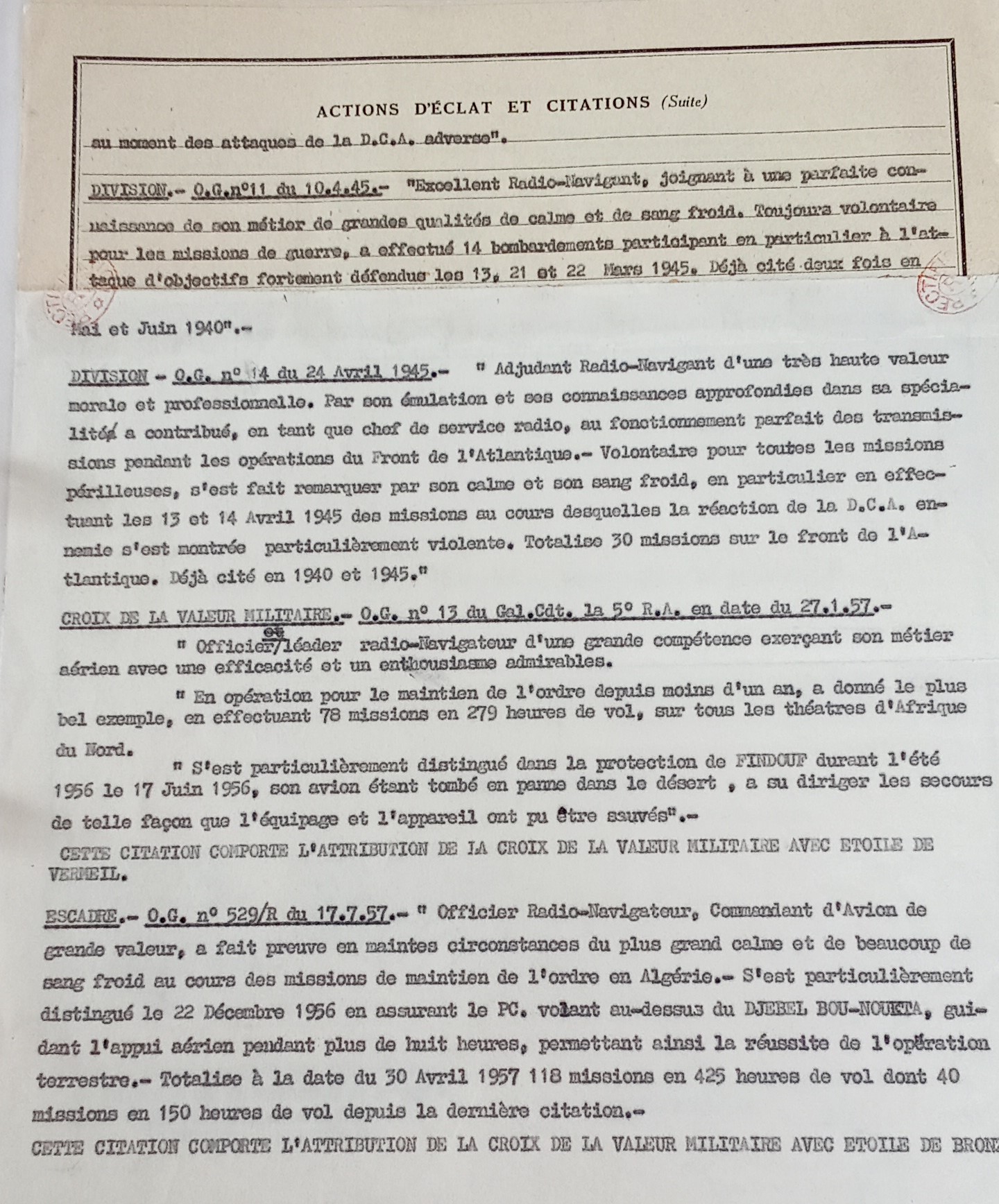 18 Avril 1943 en Algérie alors qu'il servait au sein