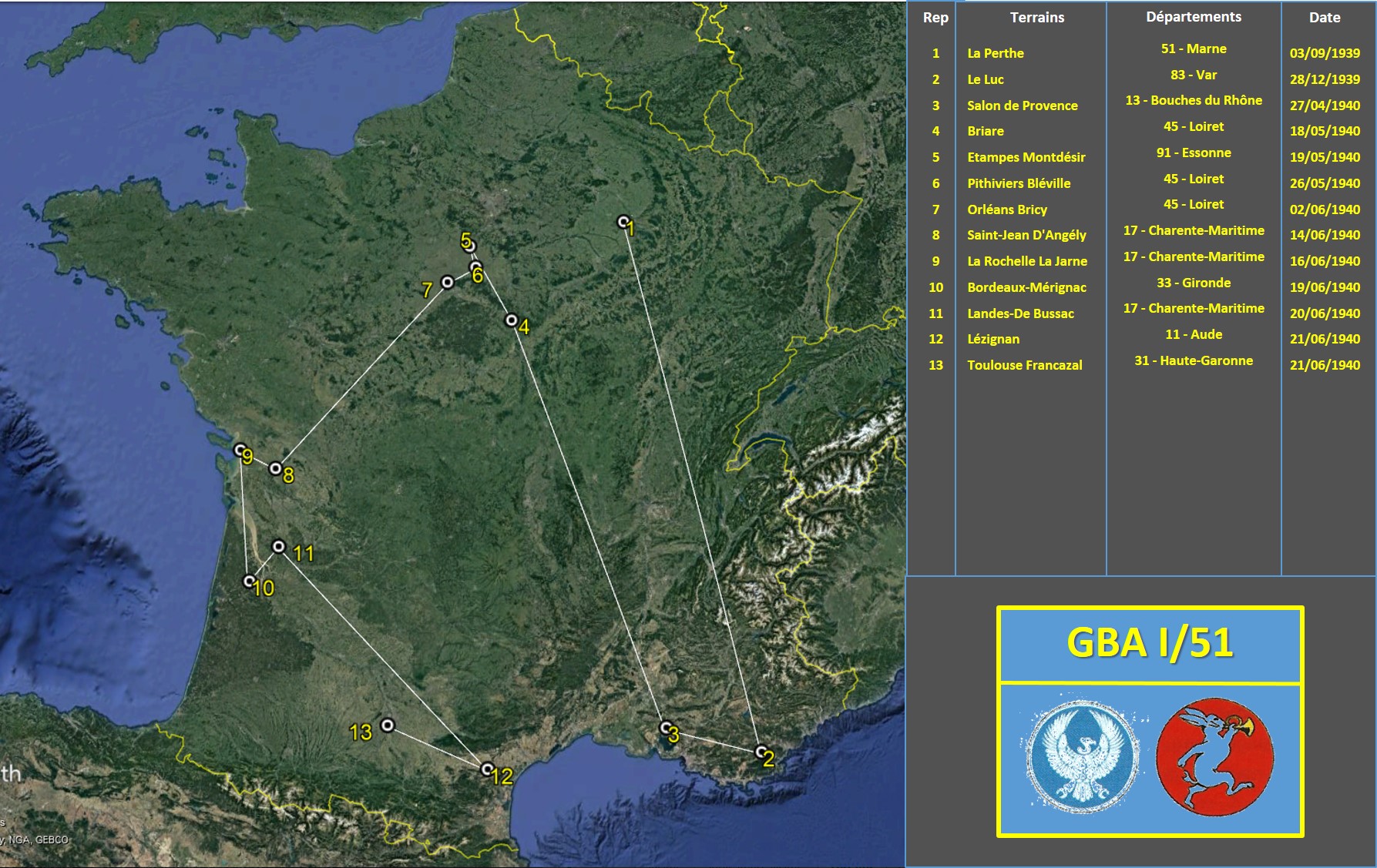 Cliquez sur les Groupes de Bombardement d'Assaut ci-dessous pour accéder à la carte des déplacements de chacune de ces unités Groupement No19 Groupement No 18